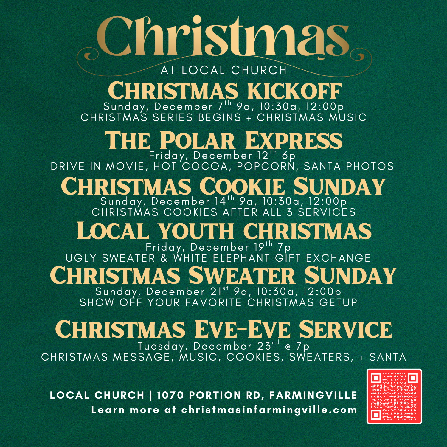 Join us on December 23rd for our Christmas Eve Eve service @ 7:00p at Local Church.